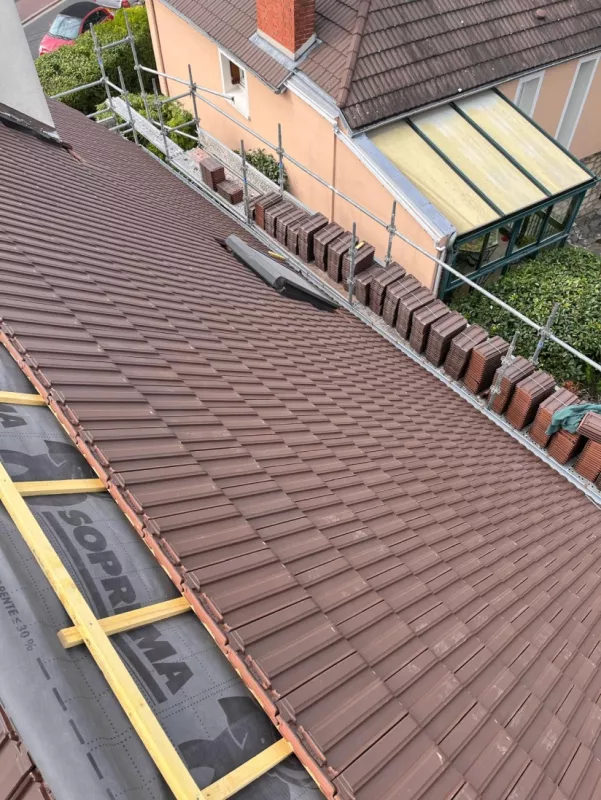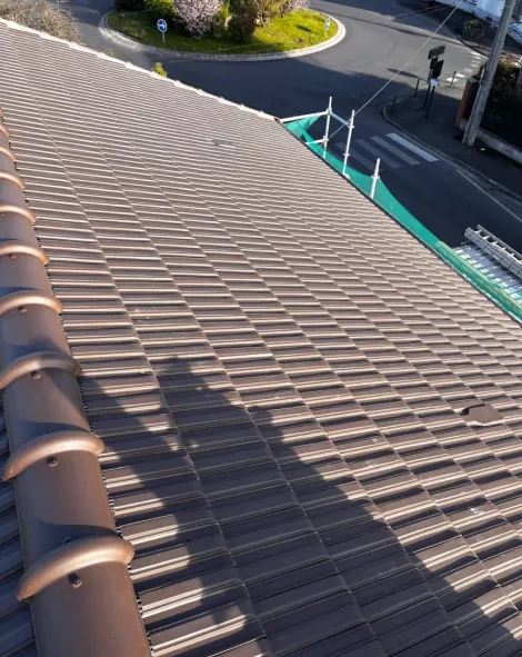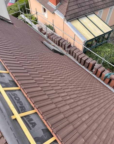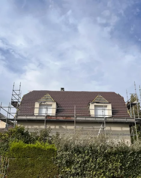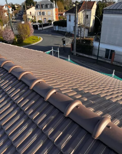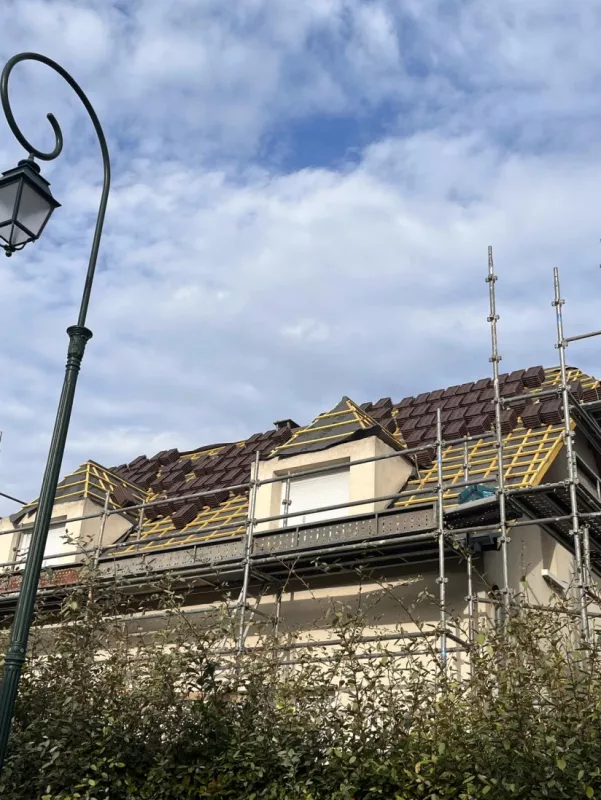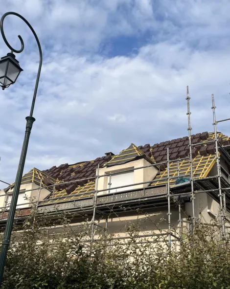 - Pose de toiture neuve en tuiles : Installation soignée et durable, parfaitement adaptée à la charpente existante. Nous travaillons avec différents matériaux tels que la terre cuite ou le béton, offrant un large choix de modèles, formes et coloris pour que votre toiture s’intègre harmonieusement à votre maison.