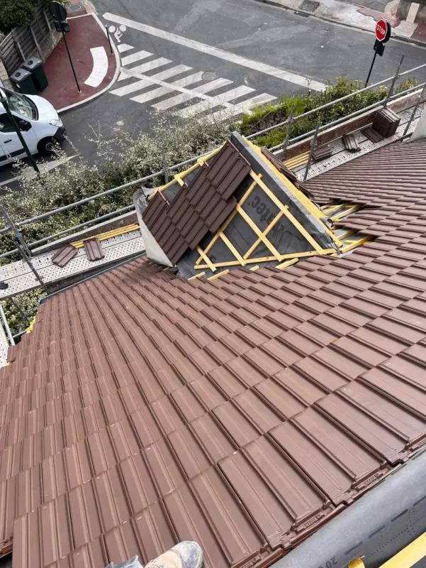 - Réparation de fuite sur toit en tuiles : Prise en charge rapide des dégradations causées par les intempéries ou l’usure du temps. Nous assurons le remplacement de tuiles cassées ou envolées, la réparation de faîtages et le traitement des fuites pour garantir une couverture parfaitement étanche et résistante.
