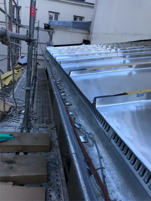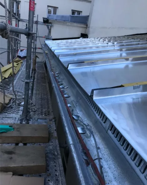 - Rénovation de toiture complète en zinc : Nous intervenons pour redonner vie aux couvertures en zinc anciennes ou endommagées. Le remplacement des bacs ou bandes de zinc, la consolidation de la structure et l’application de traitements adaptés permettent de restaurer l’étanchéité et de prolonger la durée de vie de la toiture.