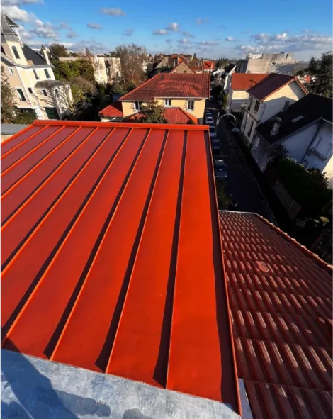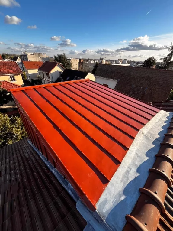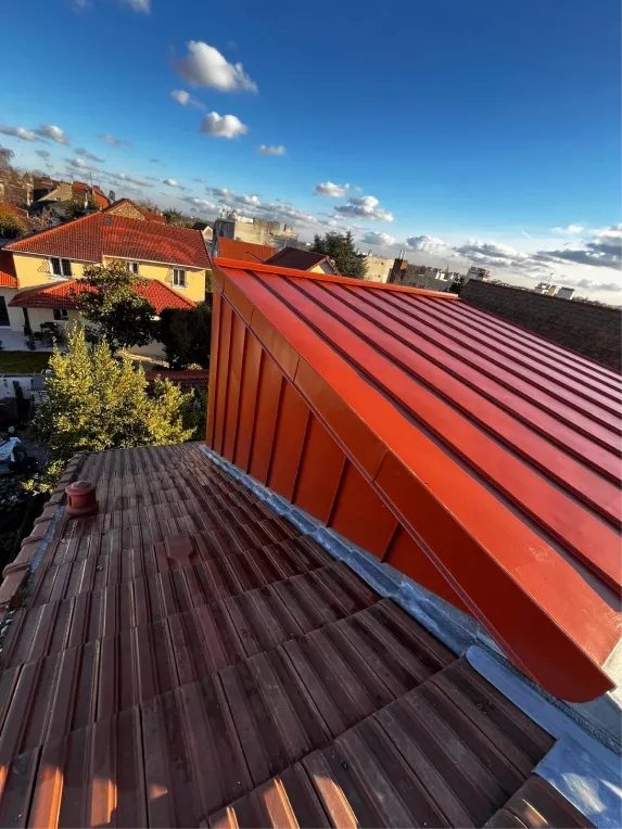 - Réparation de fuite sur toit en zinc : En cas d’infiltrations ou de détériorations localisées, nous réalisons des interventions rapides : colmatage des fissures, soudure des jonctions, correction des pentes défectueuses et traitement des points sensibles afin de rétablir une étanchéité optimale.